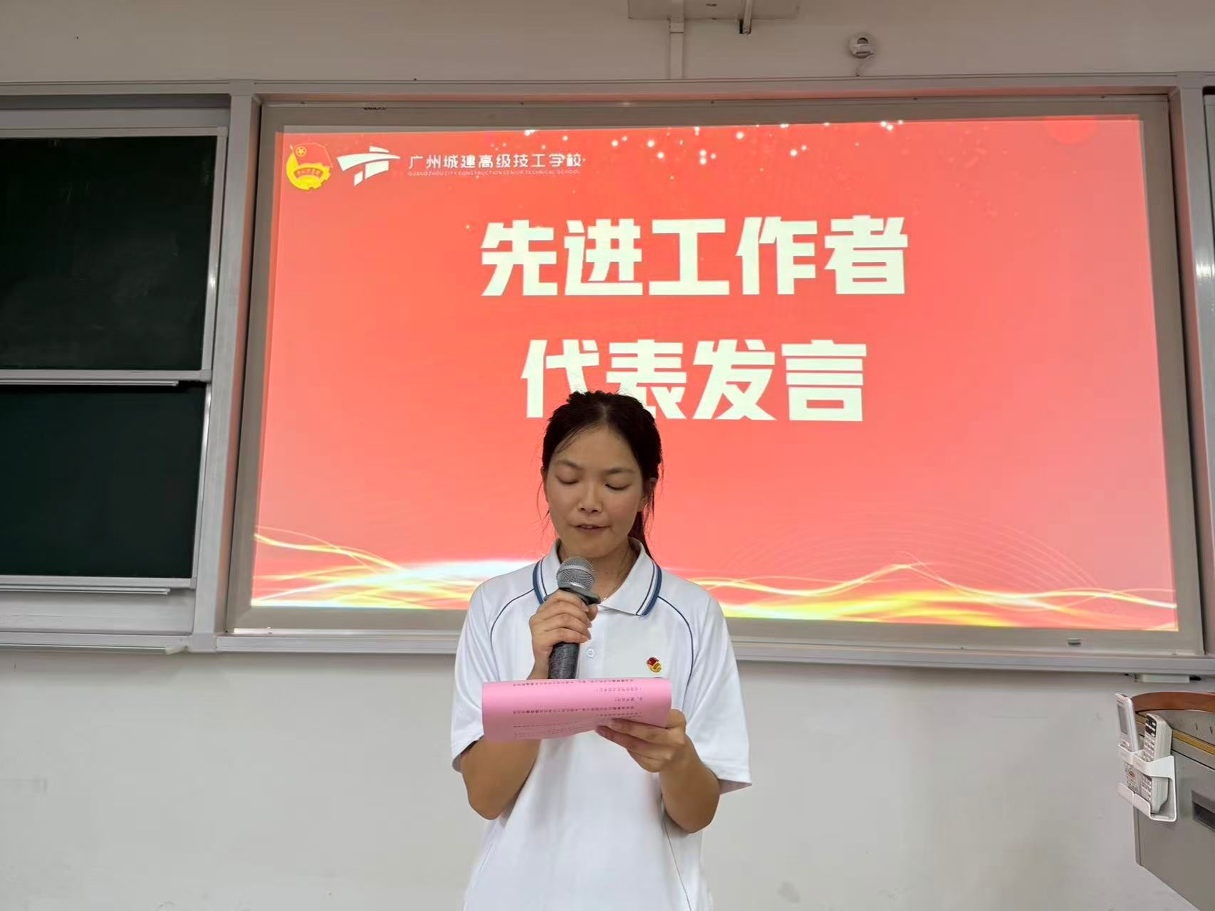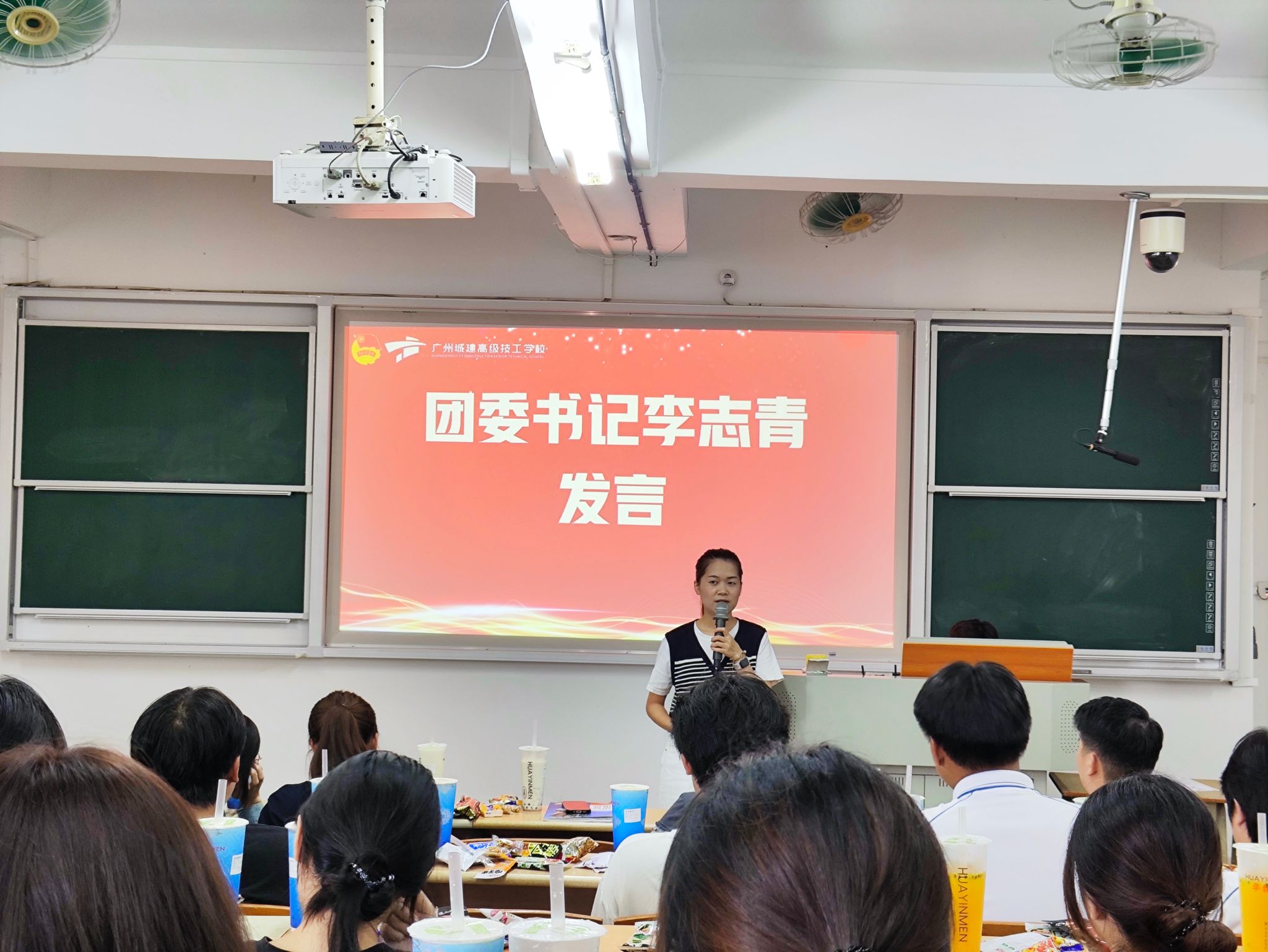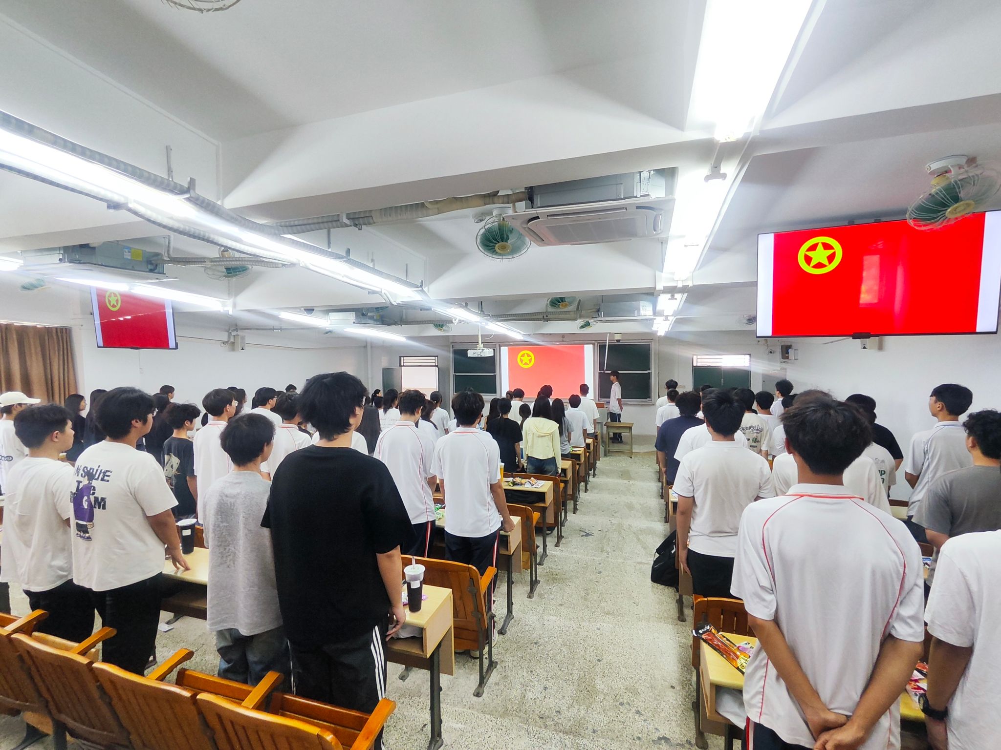 会议在庄严的氛围中拉开帷幕。伴随着《光荣啊,中国共青团》的激昂旋律,全体学生起立奏唱团歌。明亮的灯光下,学生们昂首挺胸,歌声铿锵有力,不仅展现出当代青年学子的蓬勃朝气,更传递出对校园集体的归属感与责任感,为整场会议奠定了庄重而热烈的基调。