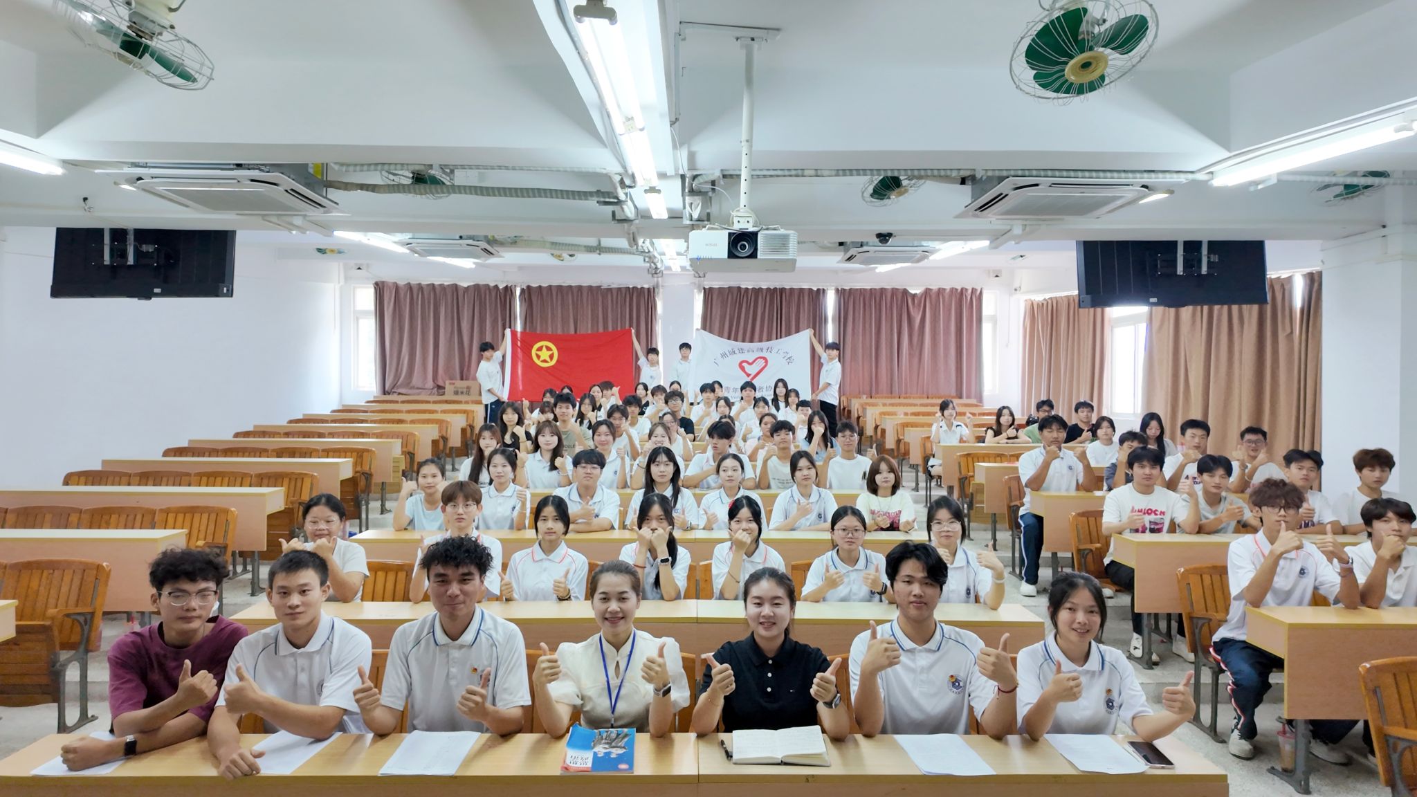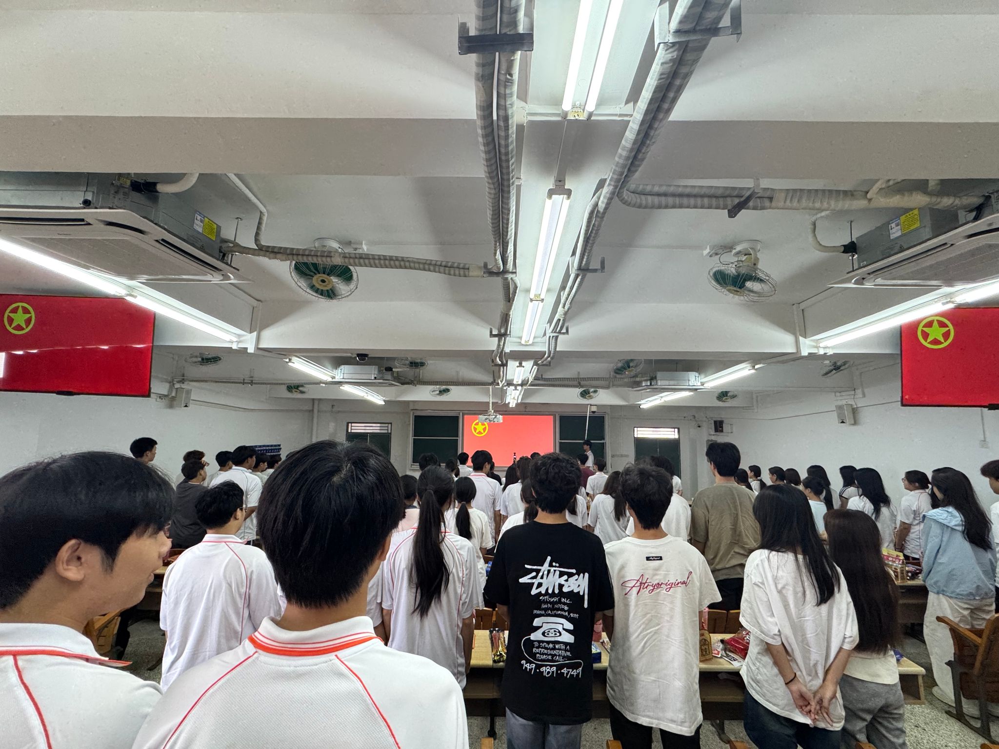 活动开篇,全场灯光暗下,大屏幕播放国庆阅兵回顾视频,画面中整齐的方阵、铿锵的步伐与激昂的背景音乐交织,在场成员纷纷挺直坐姿,眼神专注,现场庄重的氛围让新生深刻感受到青年与国家同频共振的责任。
