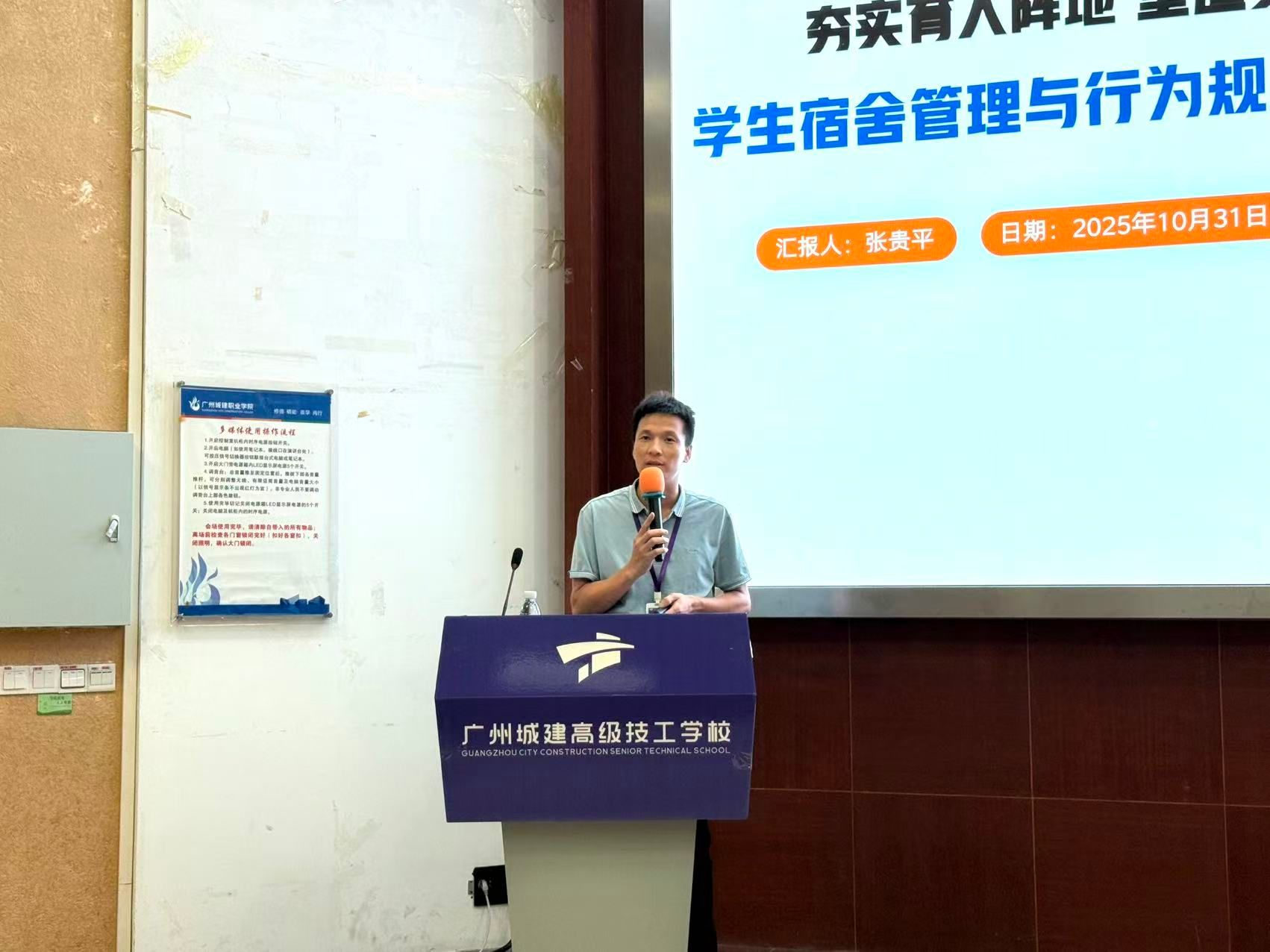 表彰结束后,学生发展与服务部副主任张贵平围绕“宿舍专题” 发表讲话。张主任指出,宿舍是学生在校生活的重要场所,也是班级管理的关键阵地,其安全、卫生与和谐直接关系到学生的身心健康与学习状态。会上,张主任结合近期宿舍检查情况,详细梳理了当前宿舍管理中做得好的地方及存在的问题,如班主任深入宿舍,加深了和学生的感情联系;宿舍内务效果显著提升,学生清洁意识有所增强。但也有个别宿舍卫生达标率低、安全隐患排查不及时等,张主任对此提出整改要求:一是班主任加强宿舍巡查频次,及时了解学生住宿动态;二是强化学生宿舍安全意识教育,重点围绕用电安全、消防安全等开展主题班会;三是建立宿舍长责任制,发挥学生自主管理能力,推动宿舍形成良好风气。