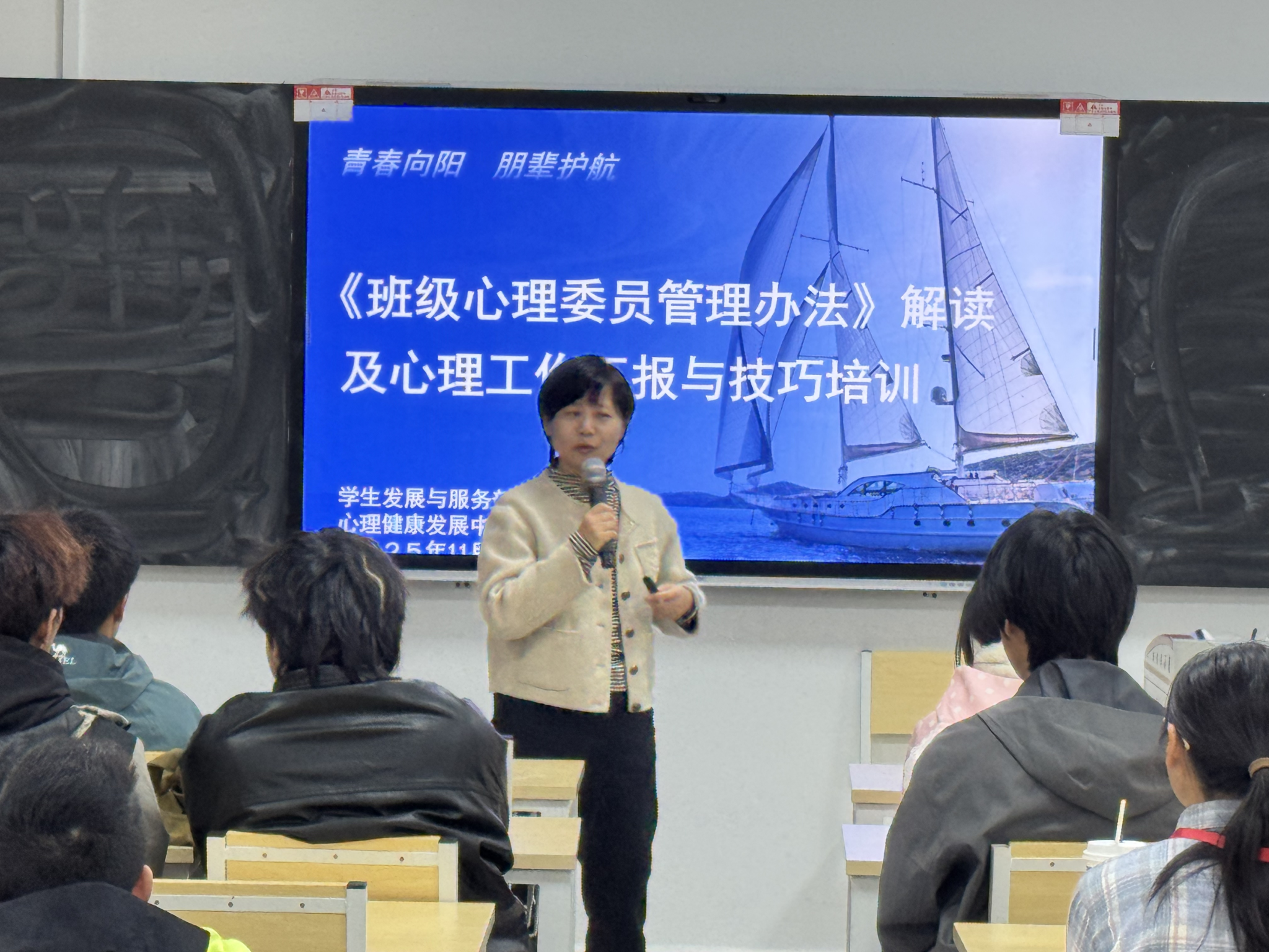 为增强校园内朋辈心理支持的力量,提高班级心理委员和心理协会成员的工作能力,学生发展与服务部心理健康发展中心计划举办“与你同行,心委在行动”-2025级班级心理委员及心理协会成员培训。本次培训由心理健康发展中心主任白云东担任讲师。