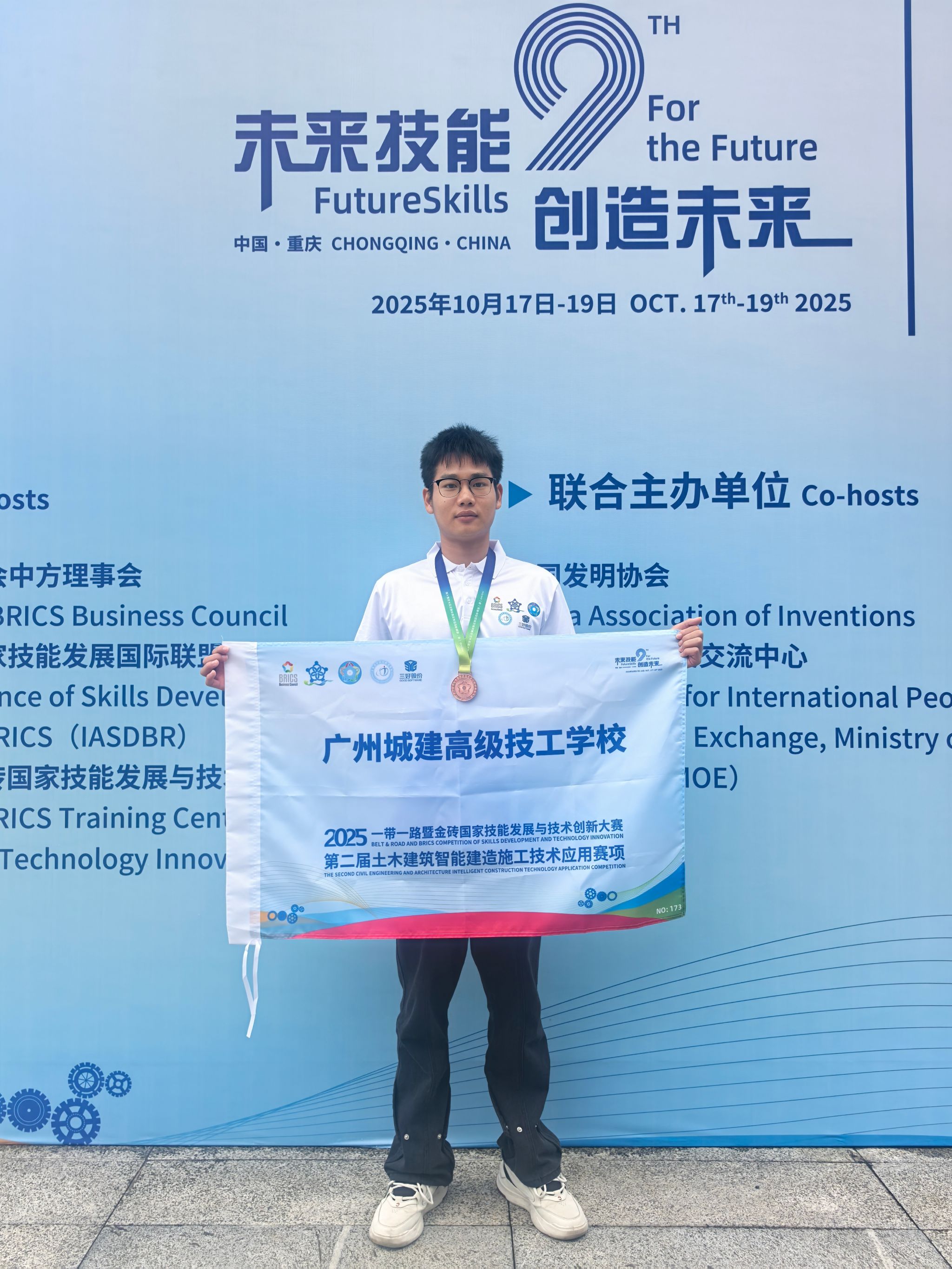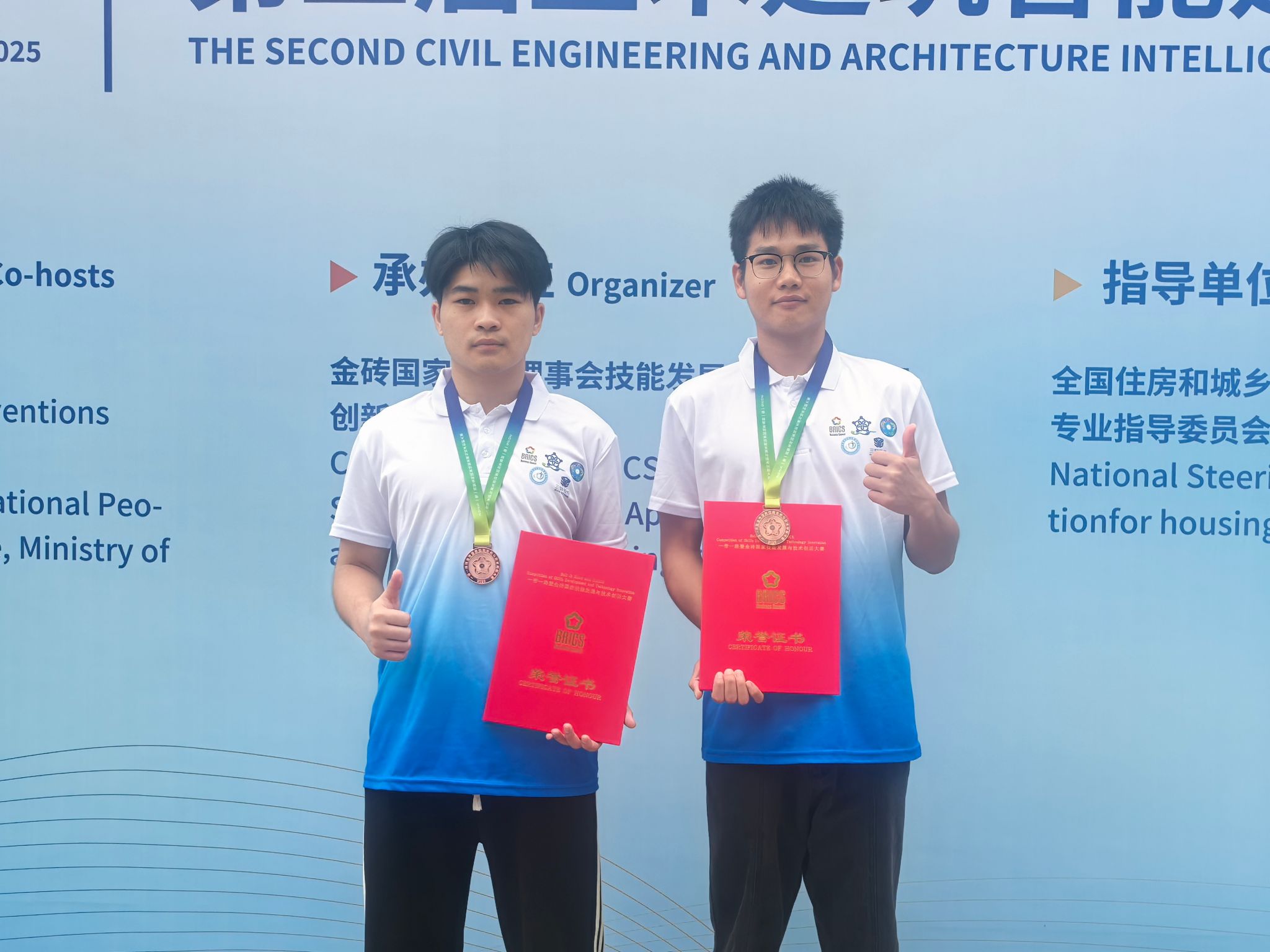 本次全国总决赛汇聚了来自全国各地职业院校的优秀选手,竞争激烈。代表我校出征的先进制造系21级建筑施工五年制班曾智慧同学与23级工程造价中技班潘天赐同学,在比赛中沉着冷静,灵活运用所学的智能建造相关理论知识与实践技能,精准完成了各项比赛任务,充分展现了新时代职教学子的精湛技艺和良好精神风貌。