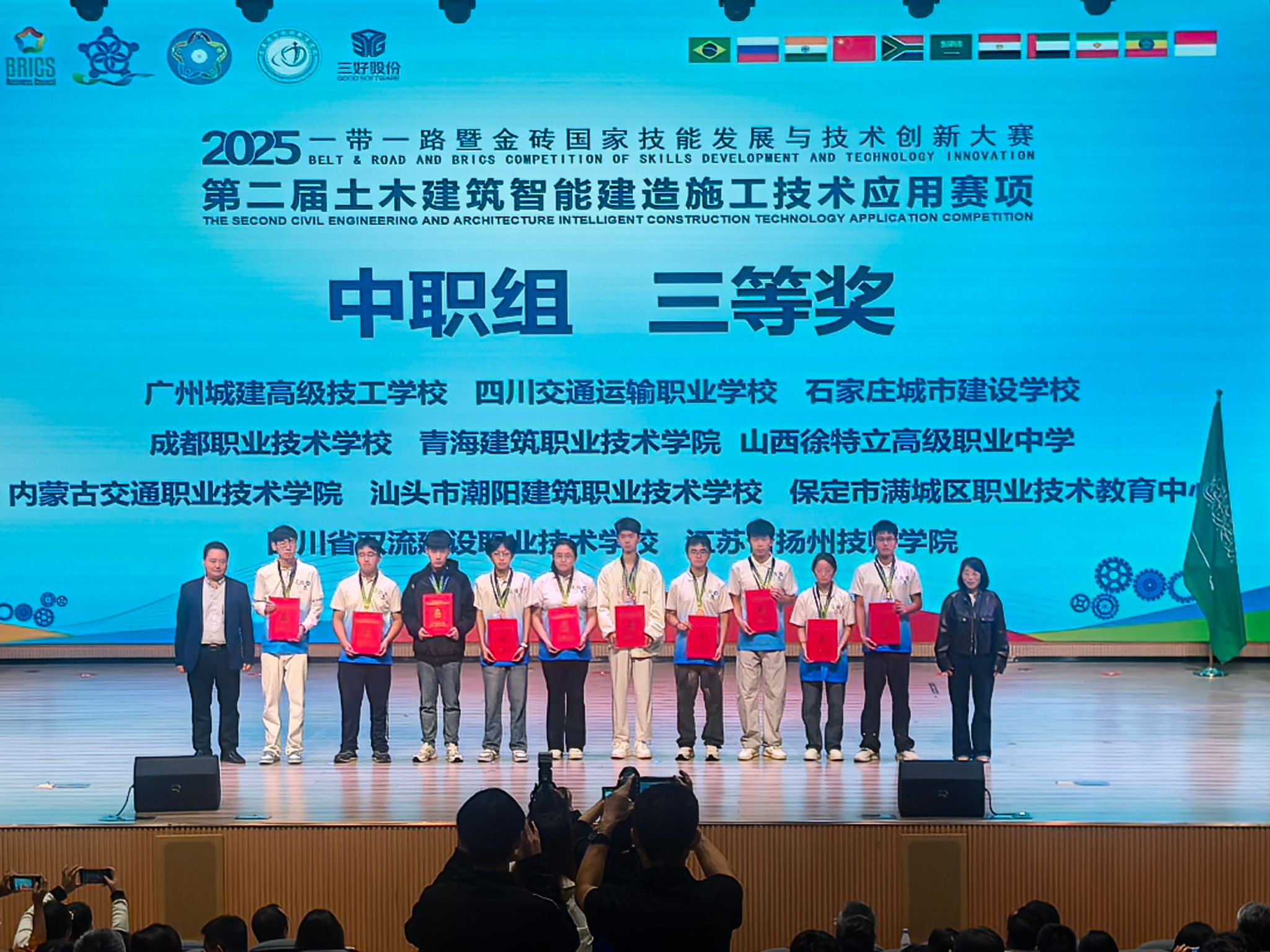 捷报传来,荣誉绽放!第二届土木建筑智能建造施工技术应用赛项全国总决赛在中国重庆举办,我校学子凭借扎实的专业功底、出色的临场发挥与卓越的团队协作精神,从中职组众多参赛队伍中脱颖而出,荣获全国三等奖的优异成绩。
