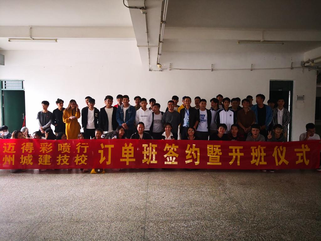为进一步促进校企合作,充分发挥校企双方的优势。2018年10月16日,学校与广州科迈得数码科技有限公司校企合作签约授牌暨计算机广告制作班订单班开班仪式顺利举行。广州科迈得数码科技有限公司总经理潘建华,市场总监魏庆元学校副校长计林、校企合作办主任余立棋、艺术教研室主任邓伟鹏、计算机广告制作专业带头人袁楠等参加了此次仪式。