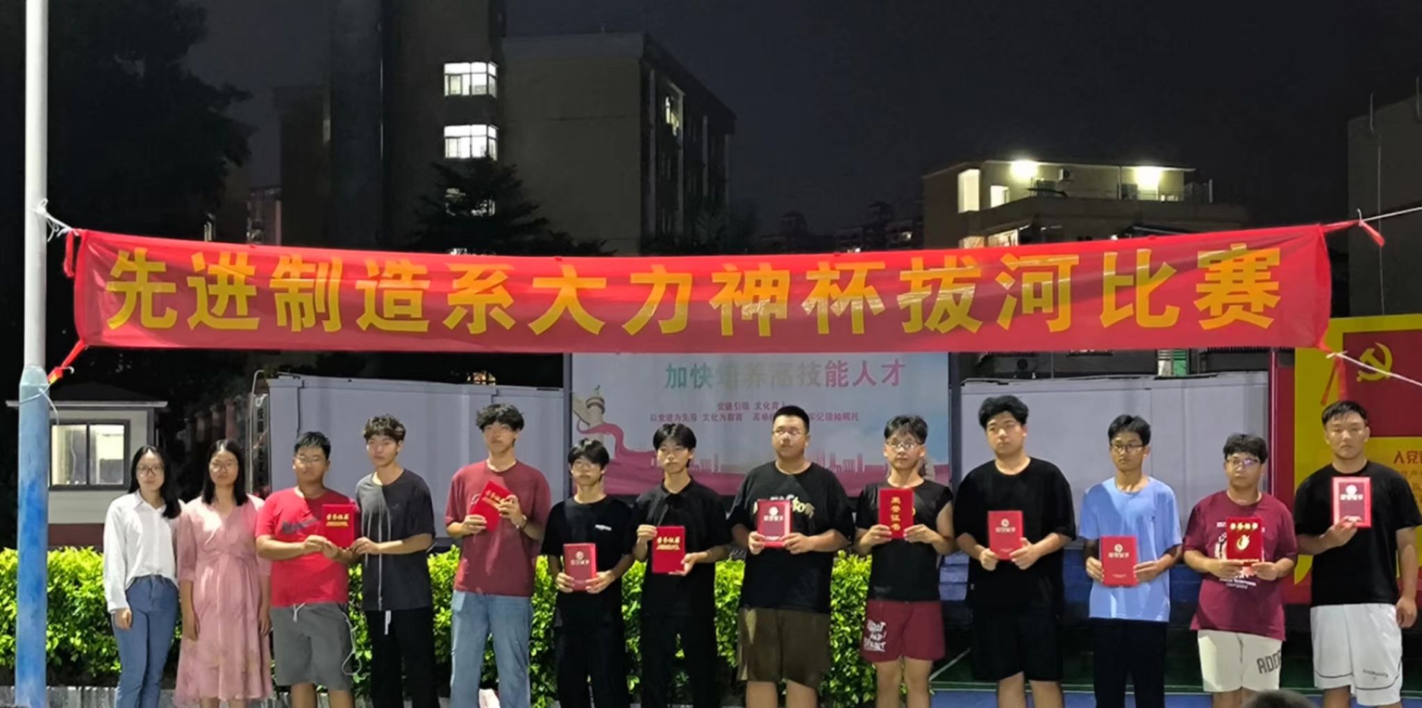 为增强新生班级凝聚力,帮助2025级新生快速融入集体,营造积极向上的校园氛围,9月1日至3日晚,先进制造系在一区篮球场成功举办新生“大力神杯”拔河比赛。连续三晚的赛场角逐中,各班级队伍以热血与坚持书写青春风采,最终圆满落下帷幕。