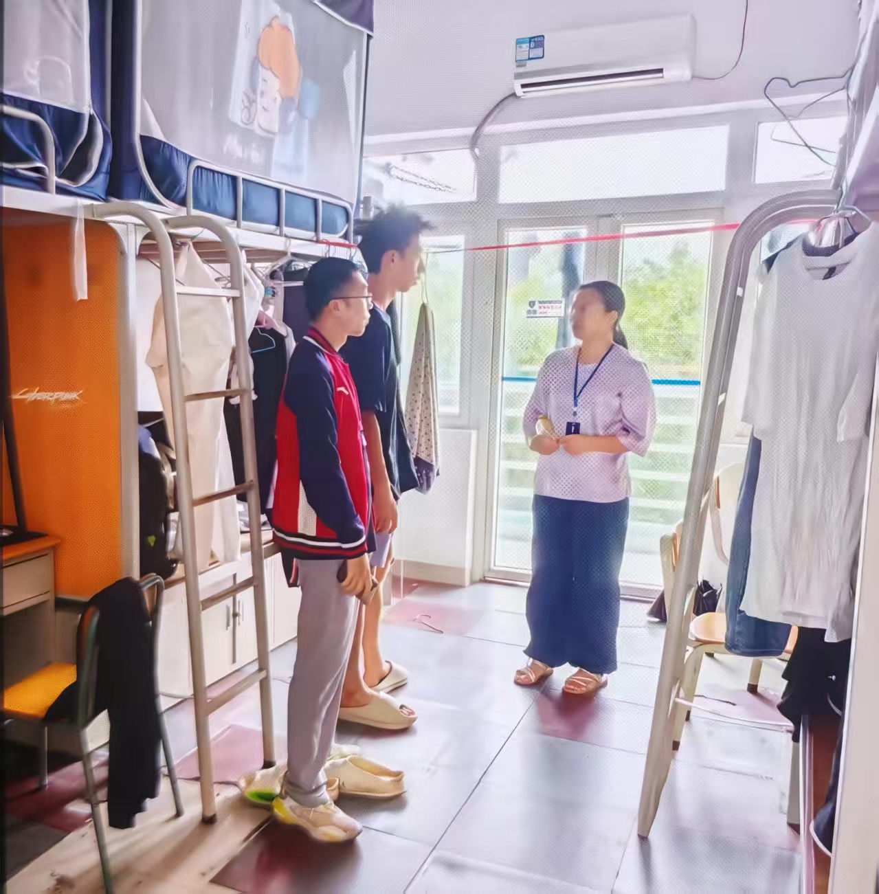 “同学们,台风期间一定要留在室内,非必要不外出;记得提前加固门窗,清理阳台杂物,远离玻璃区域。”这是先进制造系班主任在走访宿舍时反复叮嘱的防台要点。