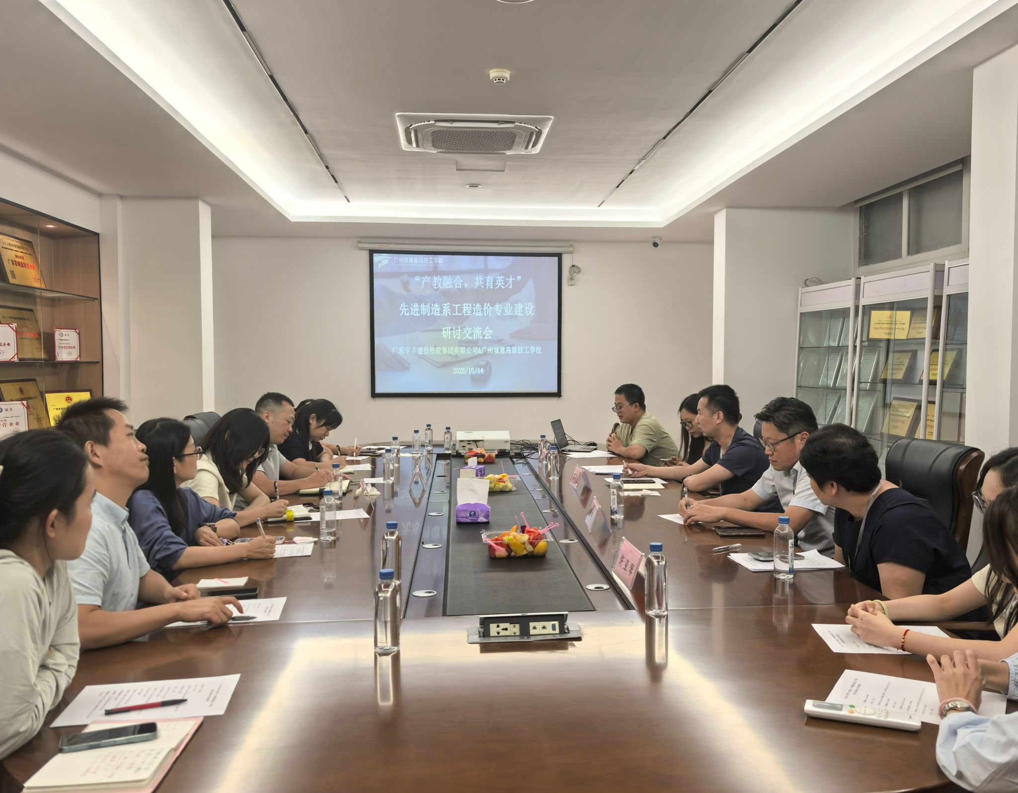 2025年10月14日下午,先进制造系副主任卢志荣、工程造价专业带头人许裕金以及专任教师罗小玲、邓丽妹、郑洁璇、邹婷婷、沈永兰、占胜共8名教师赴广东宇丰建投控股集团总部开展专业研讨与交流学习活动,宇丰集团方面由集团董事、咨询公司总经理章尤强,集团董事、经营管理部副总经理梁振声,集团董事、人力资源总监何颖,经营管理部经理许亚琴,咨询公司造价部经理张荣光等代表参加。