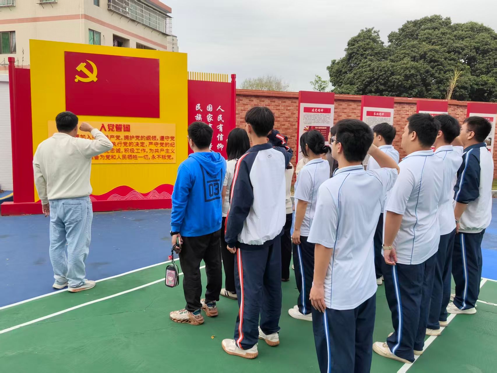 本次观影活动有三个环节。首先,重温入党誓词环节,由支部宣传委员蔡景统带领全体人员面向党旗肃立,举起右拳郑重宣誓,铿锵誓言回荡现场,既唤醒了党员的责任担当,也让积极分子感受到党组织的庄严与神圣,进一步坚定了向党组织靠拢的信念。