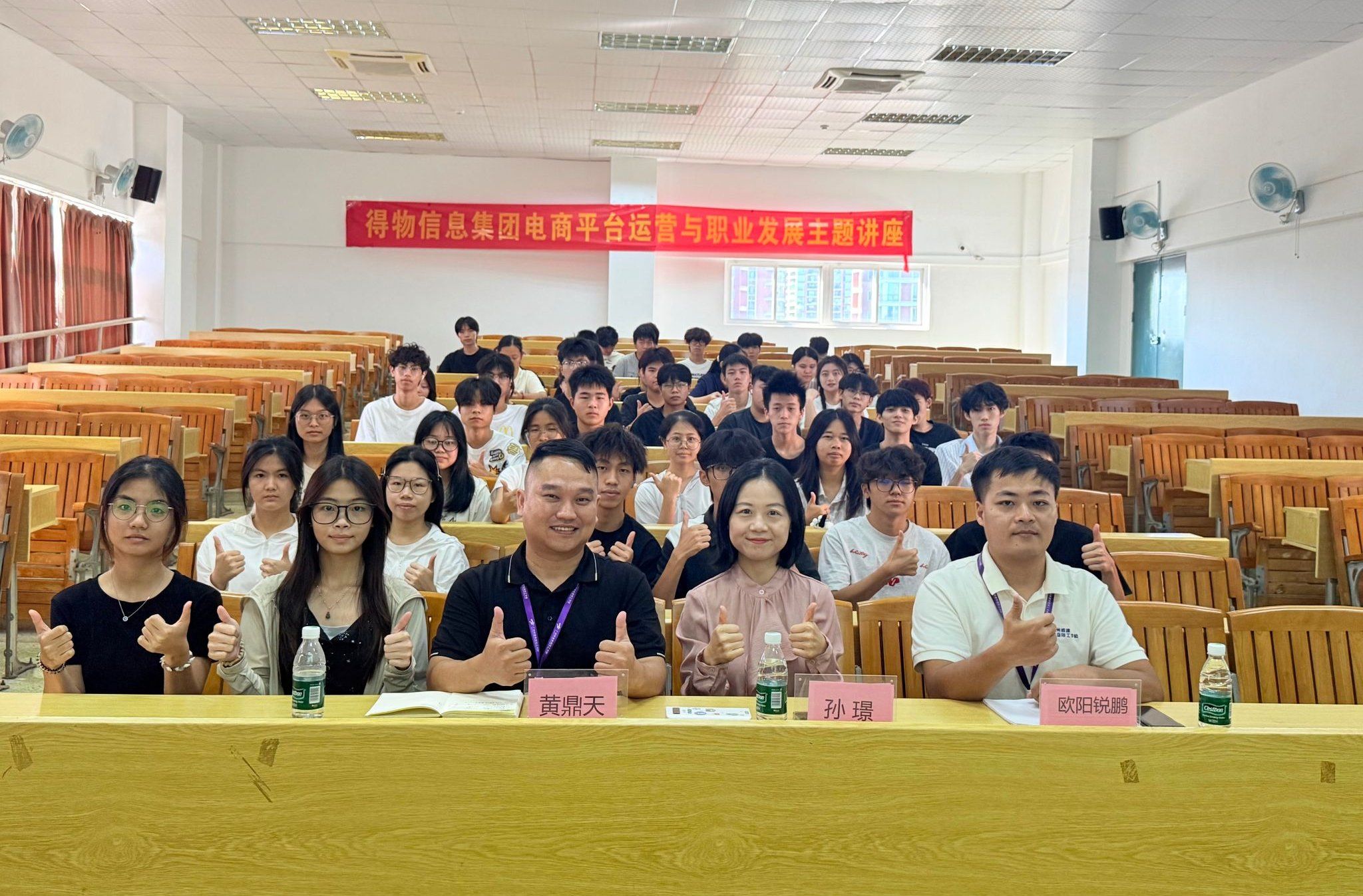 2025年10月15日,我校现代服务系电子商务专业与上海得物信息集团有限公司成功举办校企合作签约仪式暨“得物信息集团电商平台运营与职业发展”主题讲座。得物政企合作发展部高级经理孙璟,以及我校现代服务系主任罗志强、电子商务专业带头人黄鼎天、网络营销与直播技术专业带头人欧阳锐鹏出席本次活动。