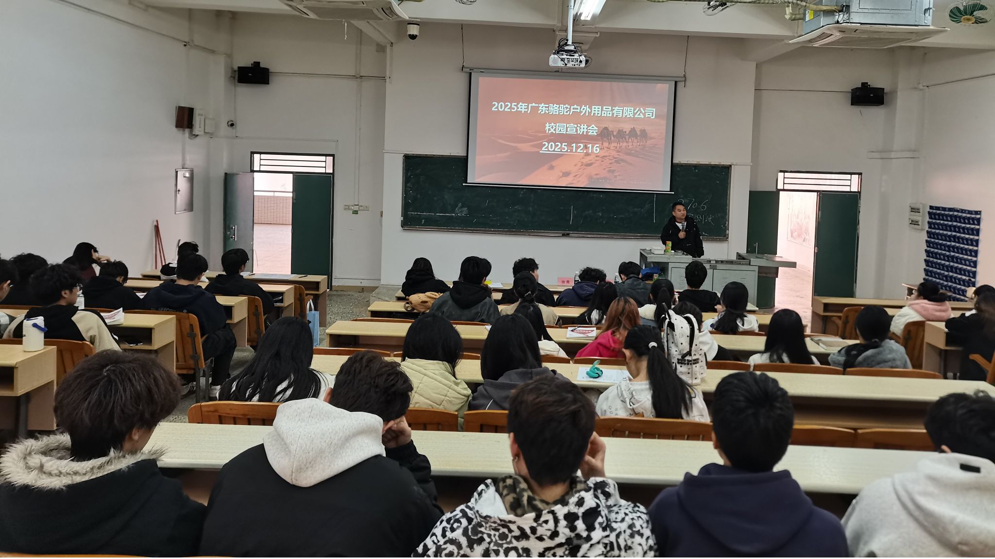 2025年12月16日,广东骆驼户外用品有限公司在我校举办校园招聘宣讲会,我校2023级电子商务、网络营销与直播技术专业学生参加。
