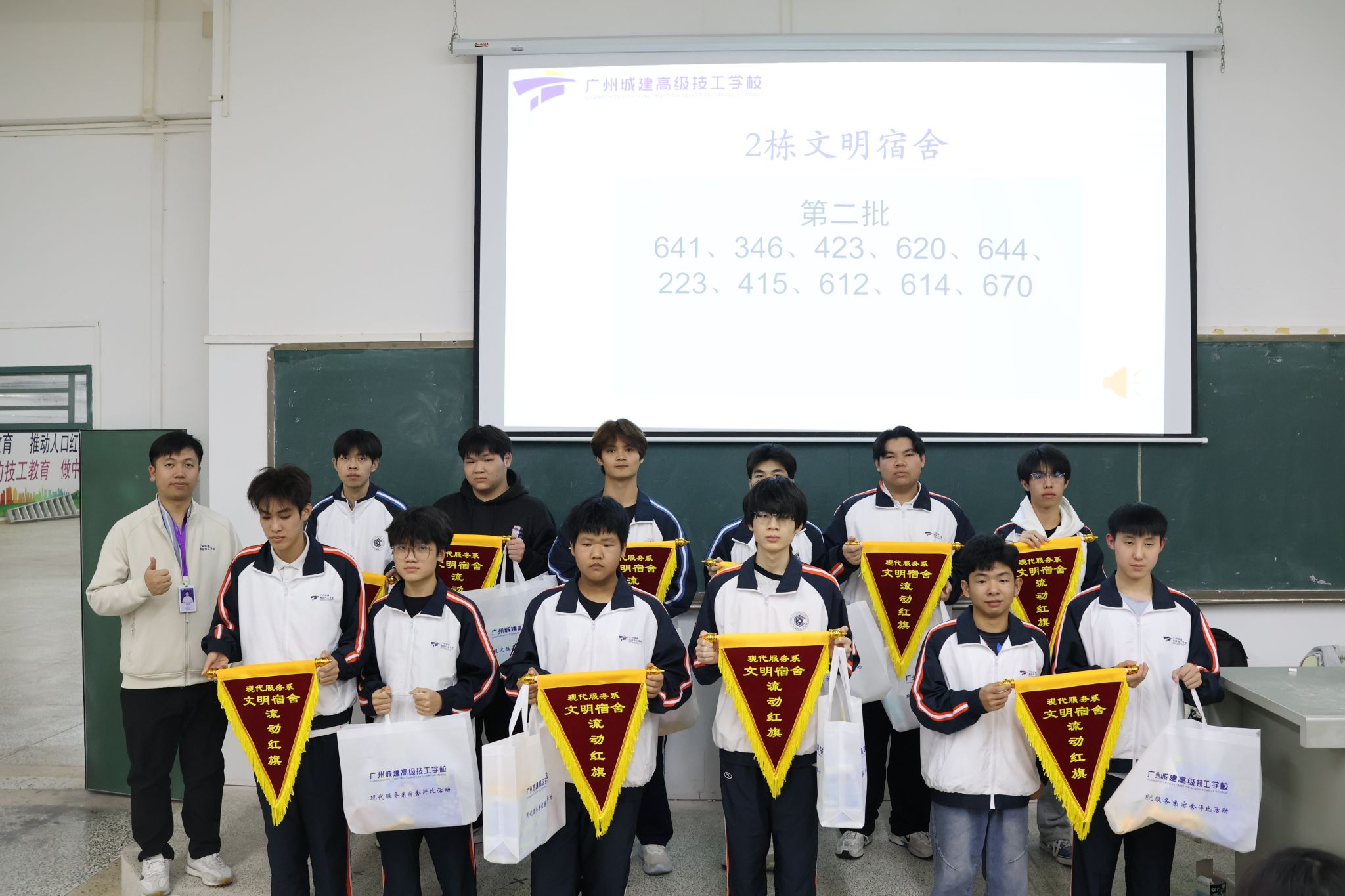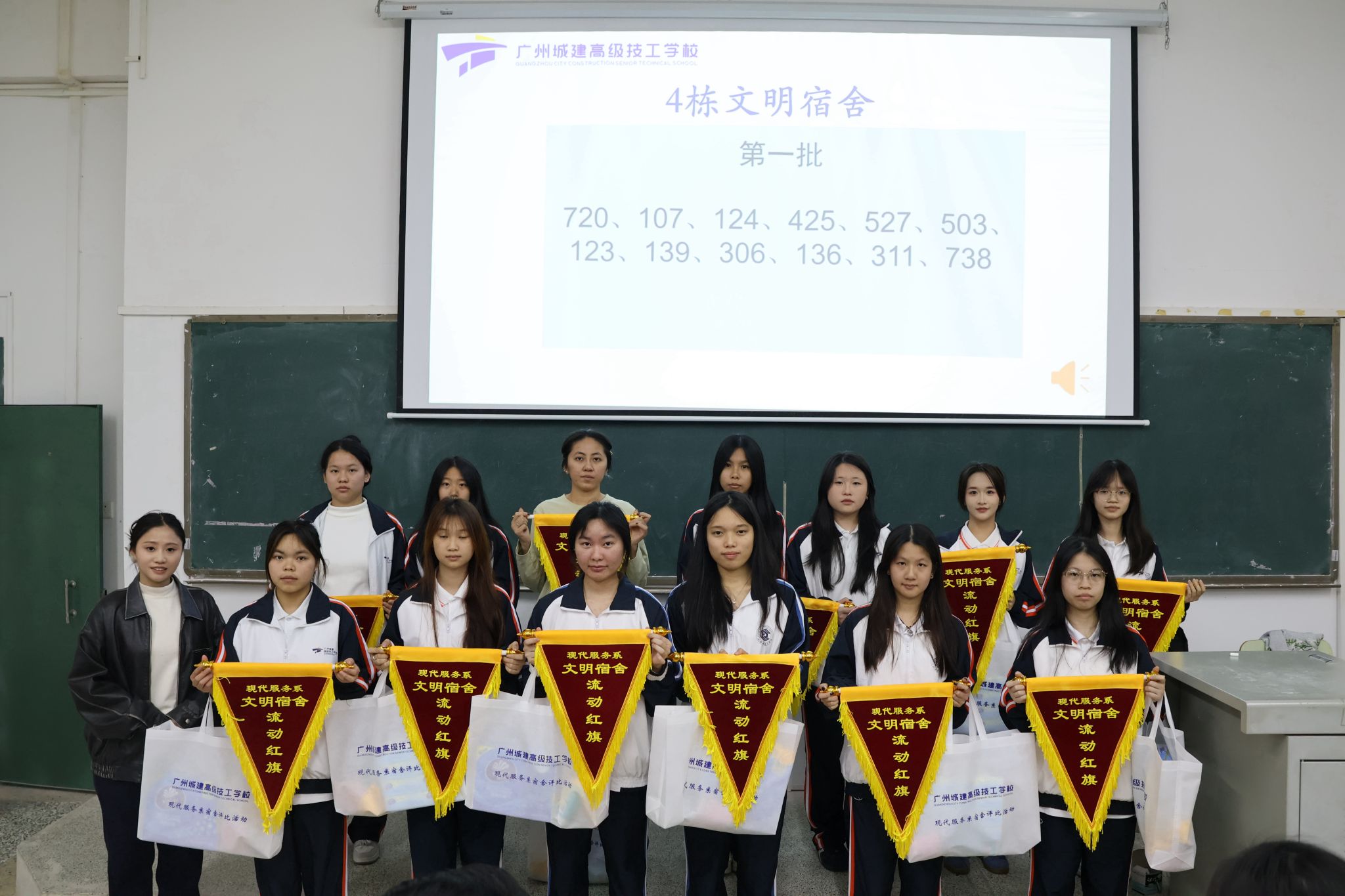 大会邀请了现代服务系学工副主任庞艺老师、团总支书记卢庆任老师、宿舍专员李景园老师及全体专职班主任出席,并为获奖宿舍代表颁奖。在评比过程中,各宿舍充分发挥创意,精心布置,展现出良好的精神风貌与团队协作能力。经过评委组公正评审,最终评选出一批环境整洁、氛围融洽的优秀宿舍。