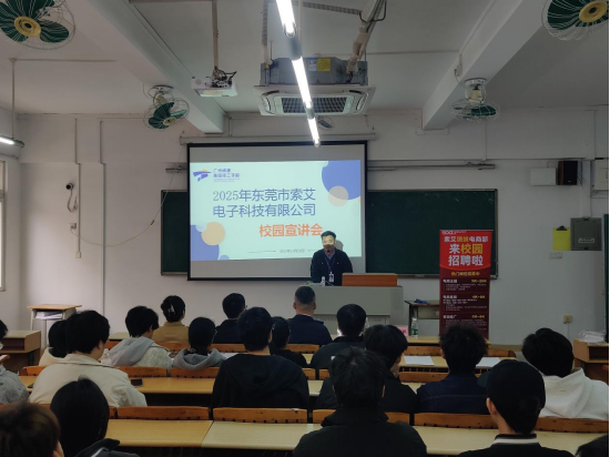 2025年12月25日,东莞市索艾电子科技有限公司在我校举办校园招聘宣讲会,我校2023级网络营销与直播技术专业与电子商务专业学生参加。