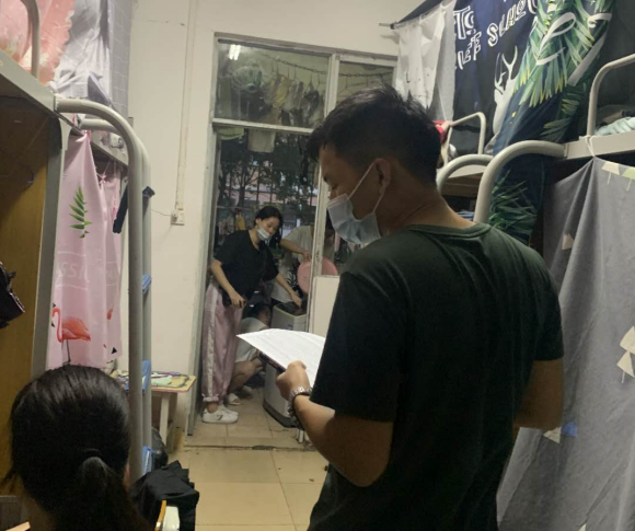 晚上7点整,全体老师在二栋宿舍门口集合,走访学生宿舍。在老师走访宿舍过程中,老师们重点提醒学生收拾好个人物品,做好离校前宿舍卫生,协助学生整理行李,并且关心学生顶岗实习单位确定情况。最后,叮嘱学生按照学校要求,文明有序离校。
