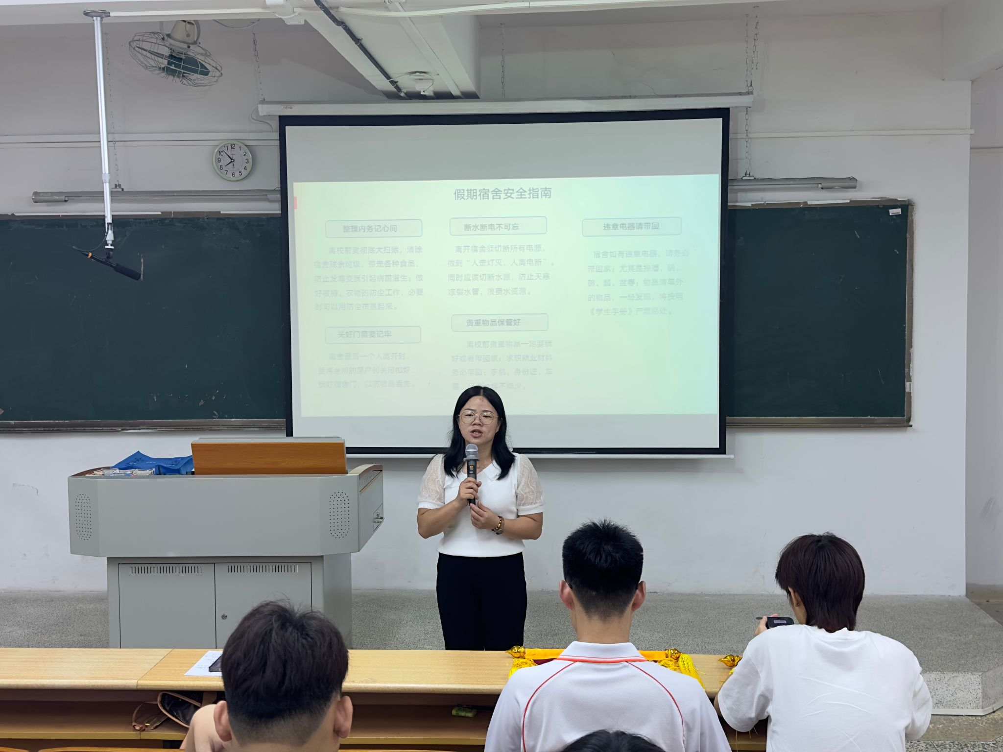 机电信息系学工副主任李炜英老师在讲话时表示,她希望受到表彰的寝室能够再接再厉,充分发挥榜样和示范作用,同时也希望获奖寝室的每一位同学倍加珍惜这份荣誉,养成良好的行为习惯,热爱学习,热爱集体,互帮互助,共同进步,发挥好示范表率作用。