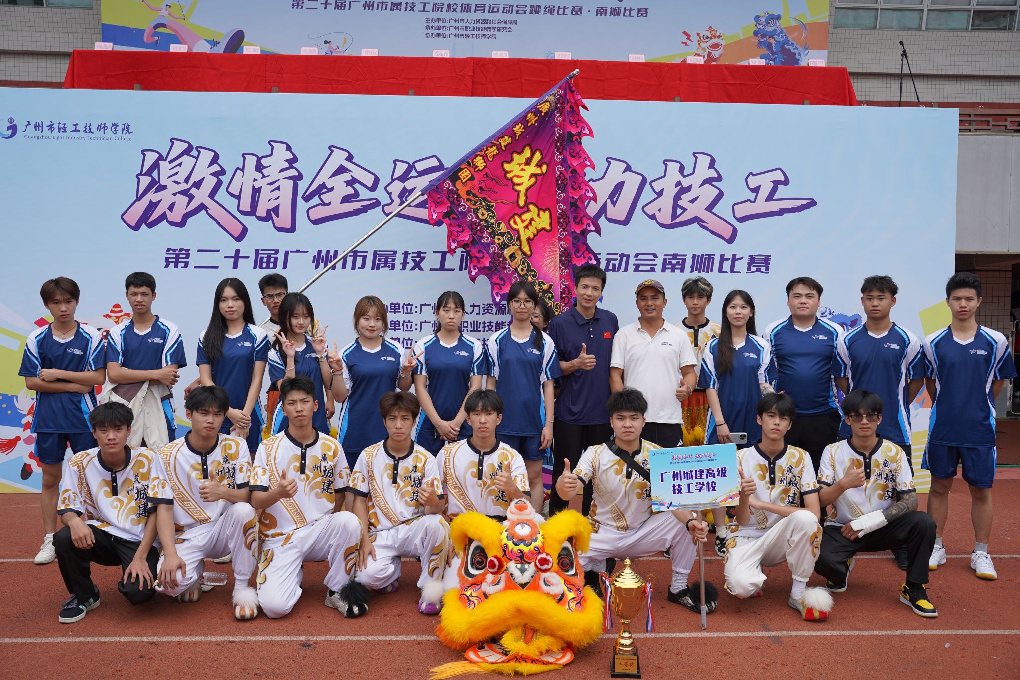 2025年11月7-8日,由广州市人力资源和社会保障局主办、广州市职业技能教学研究会承办的第二十届广州市属技工院校体育运动会南狮、跳绳、篮球比赛圆满落幕。我校参赛团队分别获得南狮比赛“二等奖”、男子篮球比赛“三等奖”和女子篮球比赛“三等奖”。