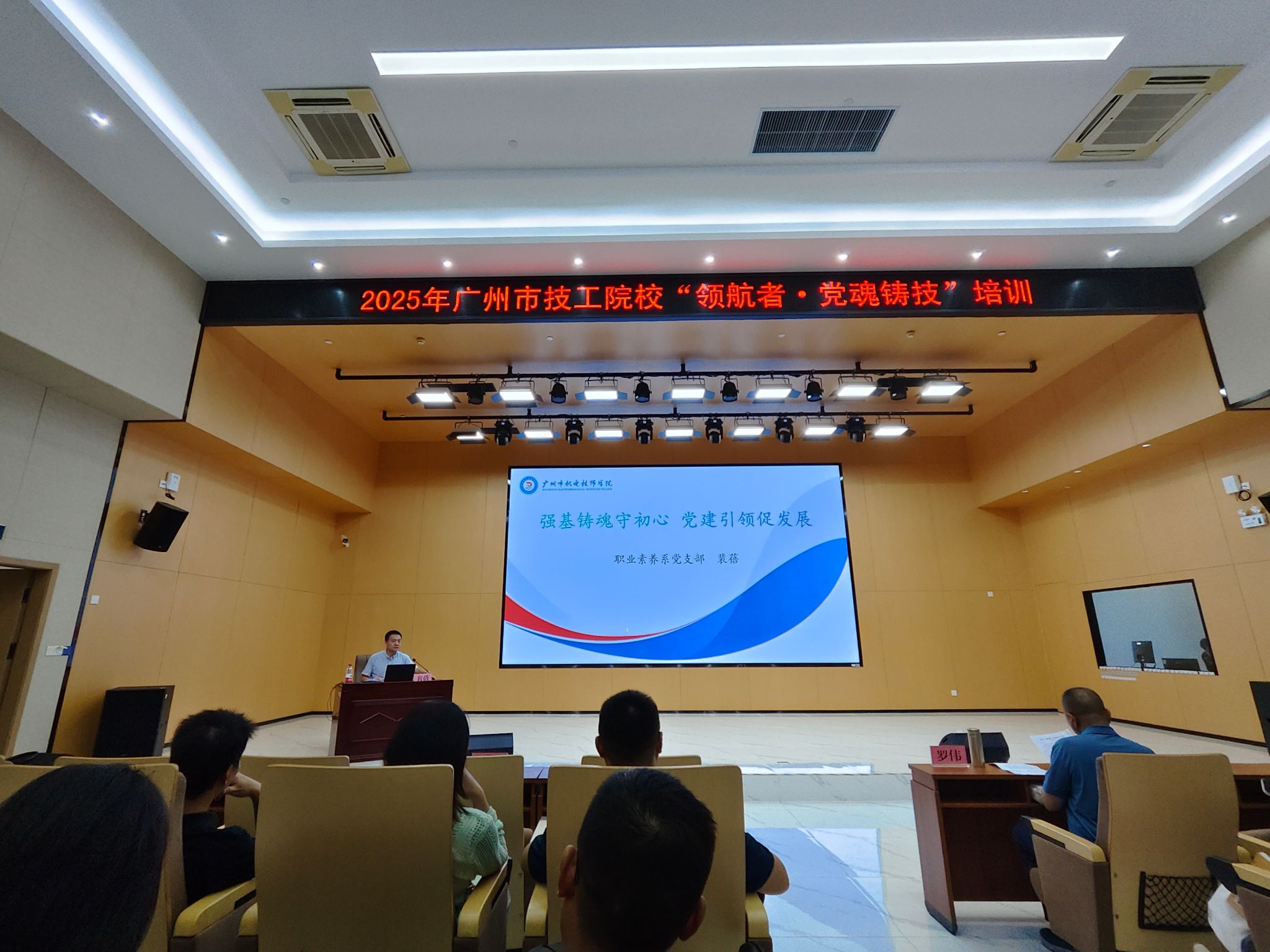 为深入学习贯彻习近平新时代中国特色社会主义思想和党的二十大精神,全面落实全国教育大会要求,切实加强技工院校思想政治工作和党建引领,2025年9月12日下午,我校数字技术系主任袁楠、思政与基础部副主任叶仁生等6名教师前往世界技能大赛中国(广州)研究中心主基地14楼学术报告厅参加第一期“领航者・党魂铸技”专题系列培训班。