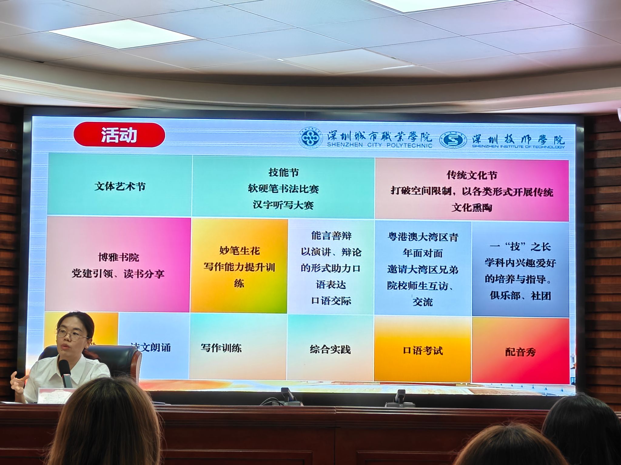 9月28日,培训进入第二阶段。李扬扬老师以“语文活动单元教学建议与示例”为核心,从“活动单元的多维诱因”“理解与认识”“设计与实施”“思考与建议”四个维度,结合语文核心素养、职业素养培养要求与学生学情,系统讲解活动单元教学的设计逻辑。期间,她展示了“古风京韵中华情”主题演出等优秀教学案例,为参训教师打开了活动化教学的新思路。