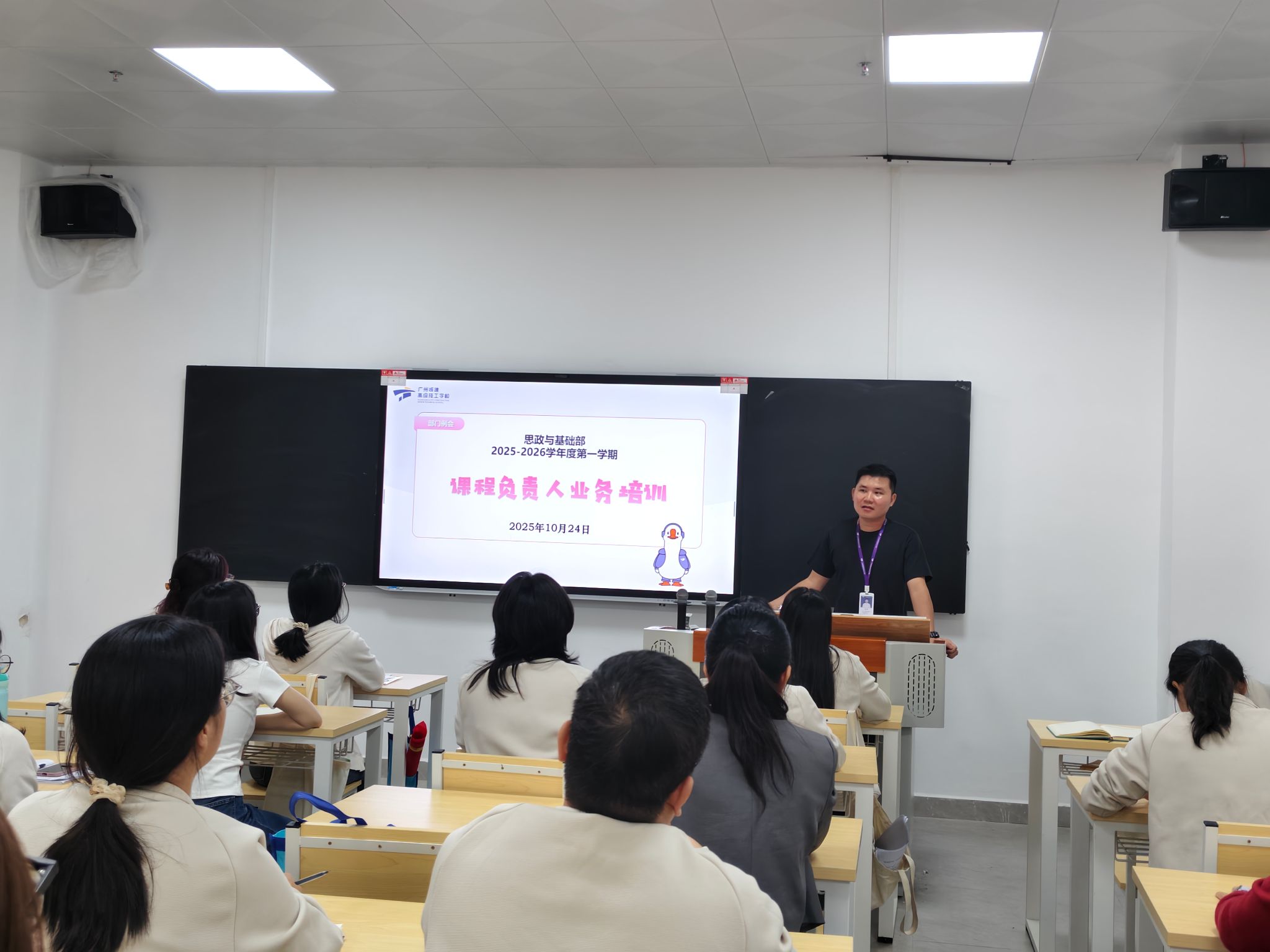 为加强课程负责人队伍建设,提升课程建设与管理水平,2025年10月24日,思政与基础部组织了本学期课程负责人业务培训。部门各课程负责人及课程组成员参加了本次培训。