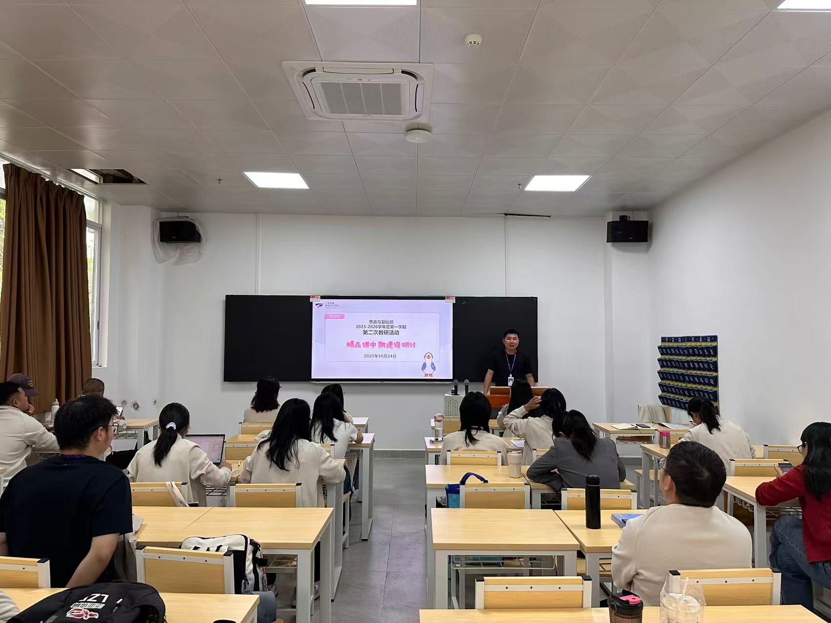 为扎实推进精品课程建设,确保课程质量与建设目标稳步落地,2025年10月24日,思政与基础部组织开展2025年下半年第二次教研活动——精品课中期建设研讨。本次教研活动由叶仁生副主任主持,部门全体教师参加,共同为两项精品课程建设“把脉问诊”,凝聚建设共识。