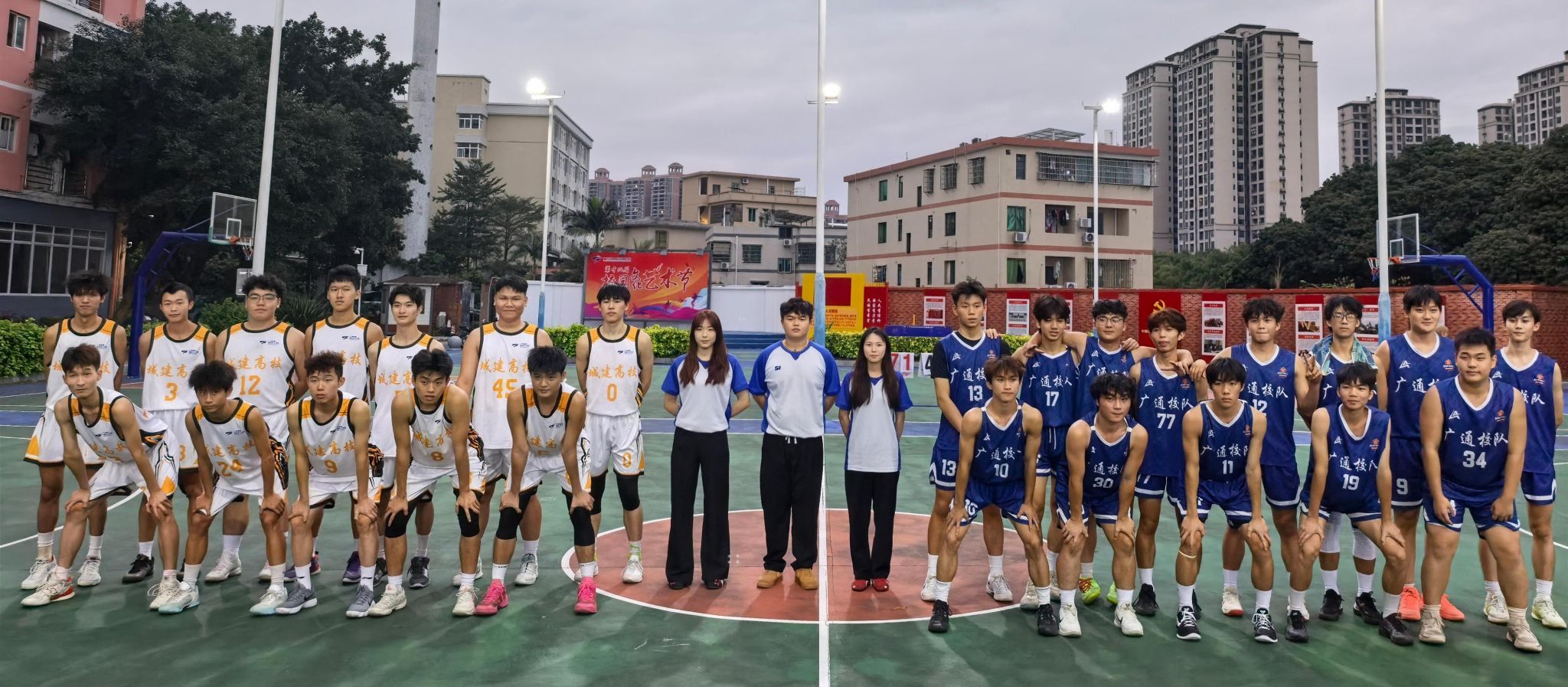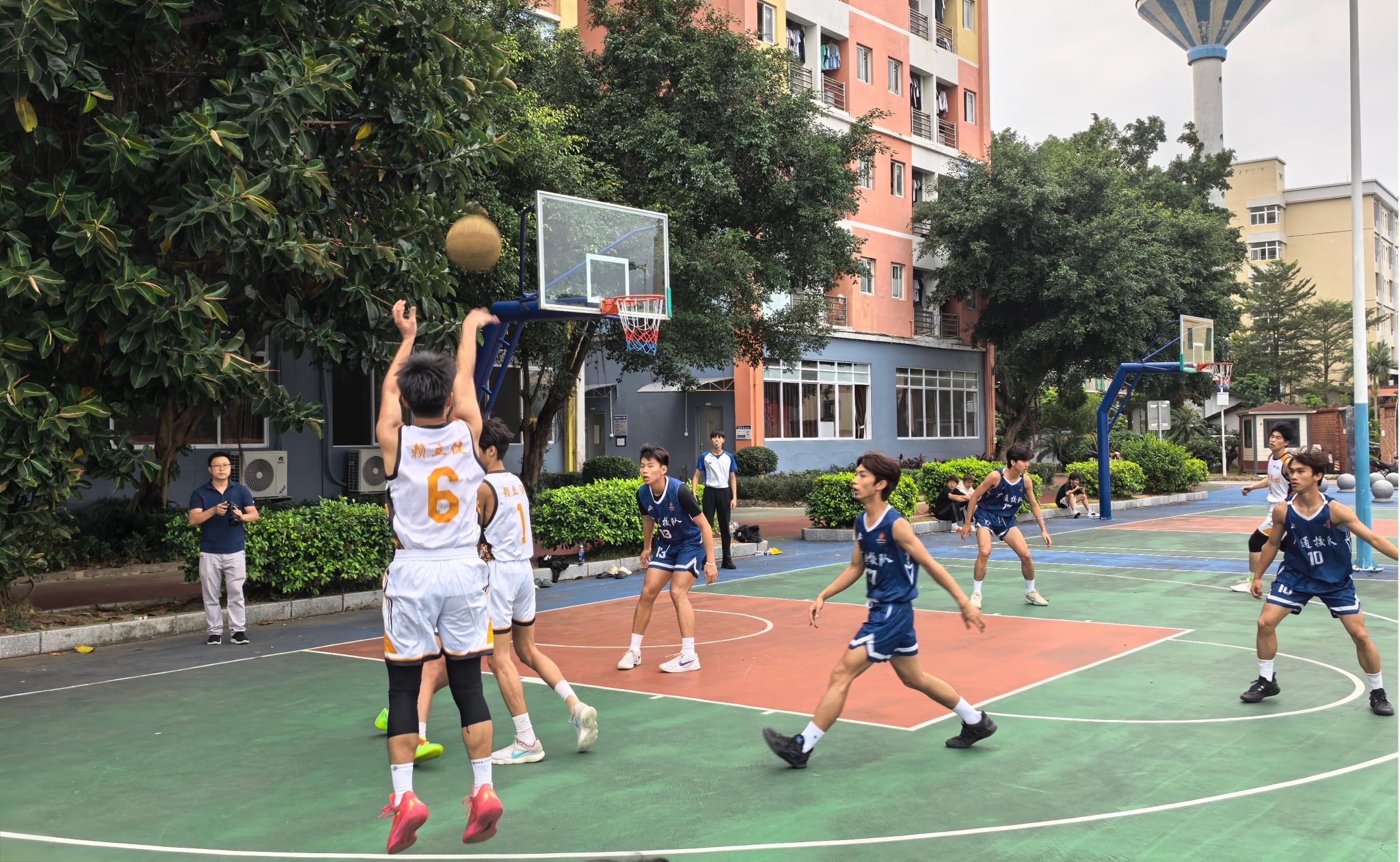 研讨结束后,两校男子篮球队在一区篮球场展开了实战交流。“友谊第一,比赛第二”,赛前,双方教练沟通规则、指导热身;赛中,队员们全力以赴,传球、突破、投篮、防守,每一个动作都展现出扎实的技术功底与团队协作意识。我校队员默契配合、攻防有序,广州通用职业技术学校队员敢打敢拼、活力十足,赛场边掌声与呐喊声此起彼伏。