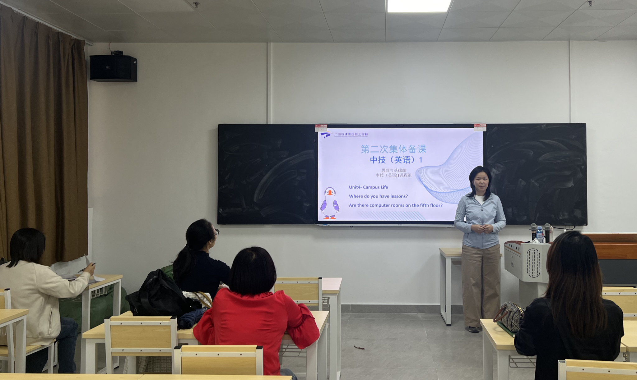 为精准把握教学重点、优化教学策略,提升中技英语课堂教学质量,2025年11月11日,英语(中技)1课程组在2栋107课室围绕Unit4"Campus Life"主题开展第二次集体备课活动。课程组全体教师齐聚一堂,共同探讨教学思路,凝聚教学共识。