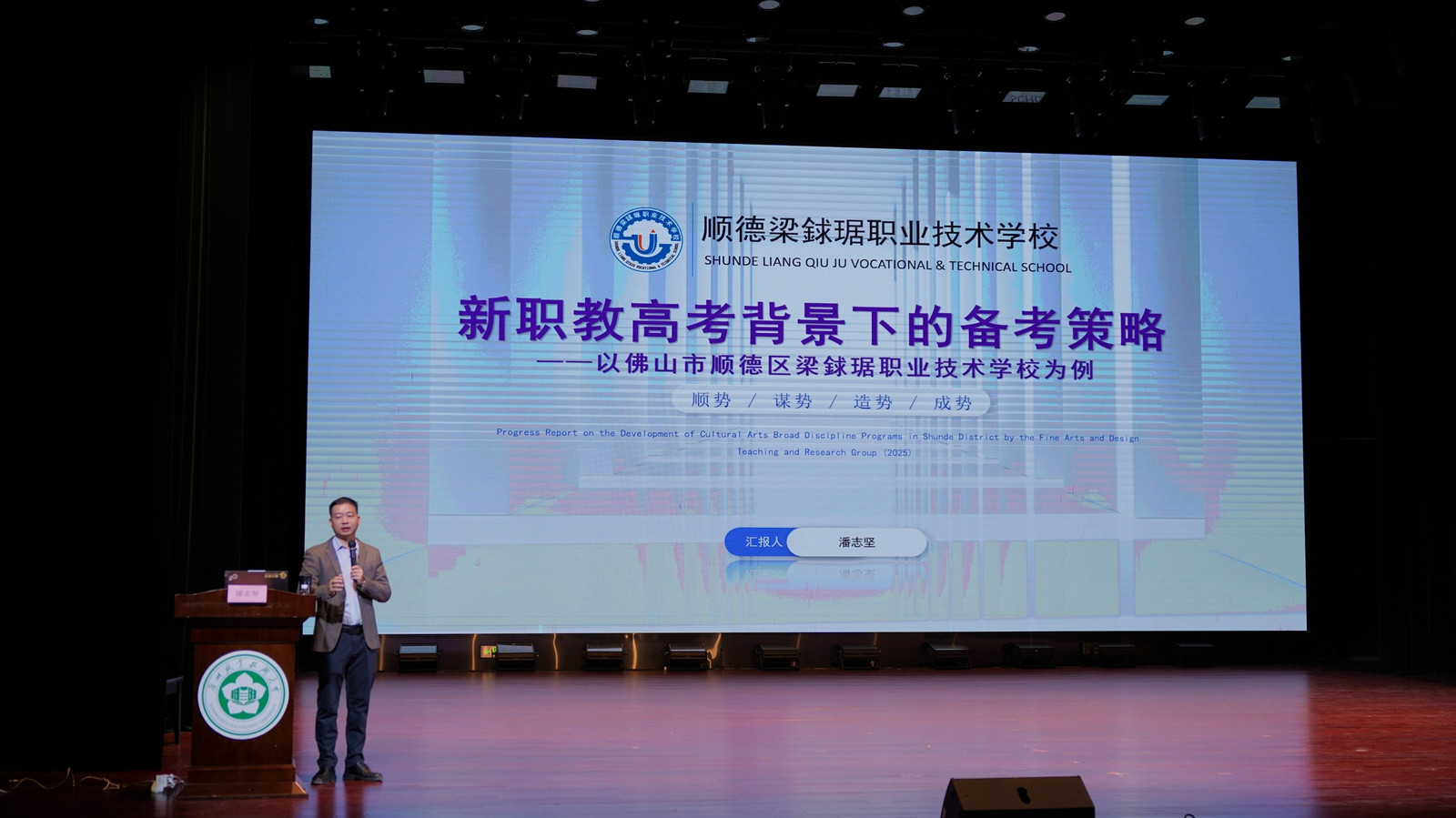 紧接着,佛山市顺德区梁球琚职业技术学校潘志坚校长以“新职教高考背景下的备考策略”为题,从“顺势、谋势、造势、乘势”四个维度分享了该校的成功经验。他强调,职教高考备考需把握政策驱动下的职教转型必然性,构建“名师梁、时间梁、空间梁、评价梁”四大支柱与八大支撑体系的备考架构,通过“四化破局”锻造创新管理模式,最终实现教学质量的跃升。潘志坚的总结分享为参会学校提供了可借鉴的备考管理范式。