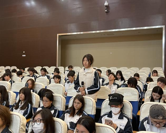 庭审结束后,审判长结合本案审理情况及被告人心路历程,为师生们带来了一场干货满满的现场普法课。审判长从掩饰、隐瞒犯罪所得罪的构成要件、量刑标准入手,结合近年来高发的电信网络诈骗关联犯罪案例,深入分析了此类犯罪中“侥幸心理”“投机心理”的危害,深入浅出地解读了相关法律条文,提醒同学们在日常生活中要警惕“赚快钱”的诱惑,远离“两卡”(电话卡、银行卡)买卖,从源头上杜绝违法犯罪念头。在互动交流环节,同学们围绕“如何识别犯罪诱惑”“遇到类似情况该如何应对”等问题积极提问,审判长结合被告人心理转变的关键节点耐心解答,并对我校学生良好的法治素养和思辨能力给予了高度肯定。