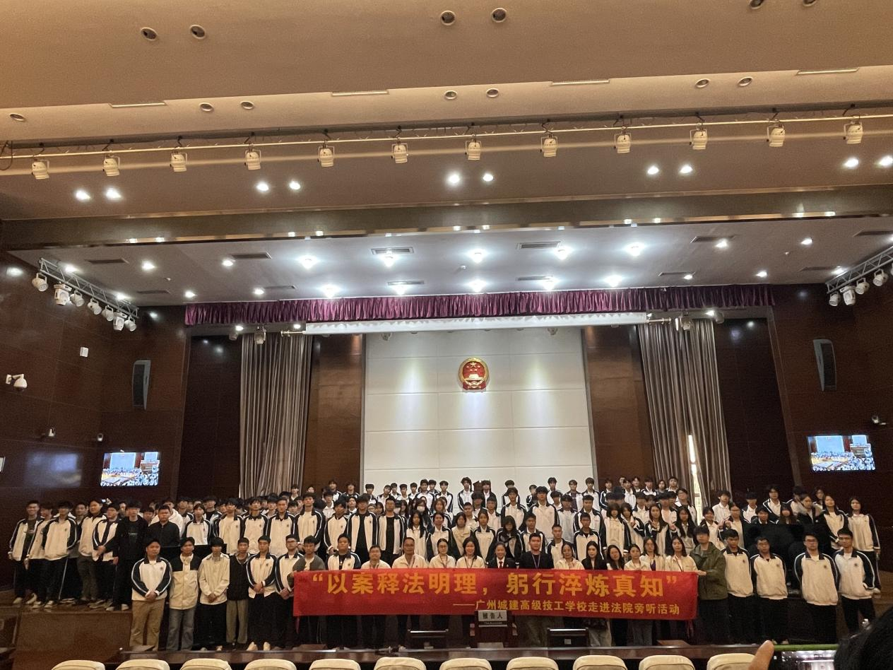 为深化思政课教学改革,推动“思政+法治”教育融合创新,让抽象的法律知识与思政理论落地生根,2025年11月25日下午,思政与基础部组织200余名师生走进从化区人民法院,以“旁听庭审+现场普法”的沉浸式方式,上了一堂生动深刻的法治实践课。