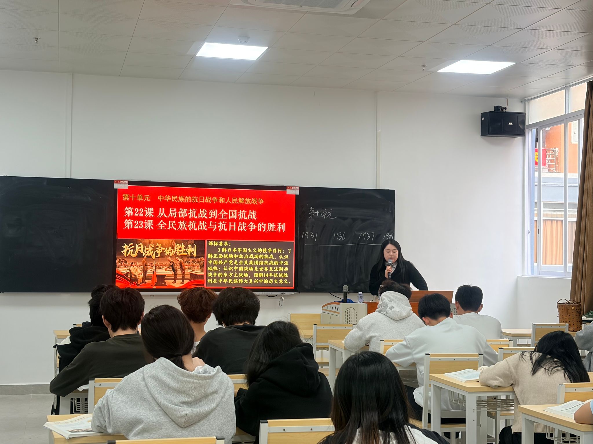 为深化课堂教学研究,提升历史教学质量,2025年12月11日下午,我校历史(中技)1课程组开展了本学期第二次集体听评课活动。本次活动聚焦“深耕抗战课堂,融铸家国情怀”主题,组内三名专任历史教师与两名兼课教师共同观摩了兼课周显艺老师执教的《从局部抗战到全国抗战》一课。