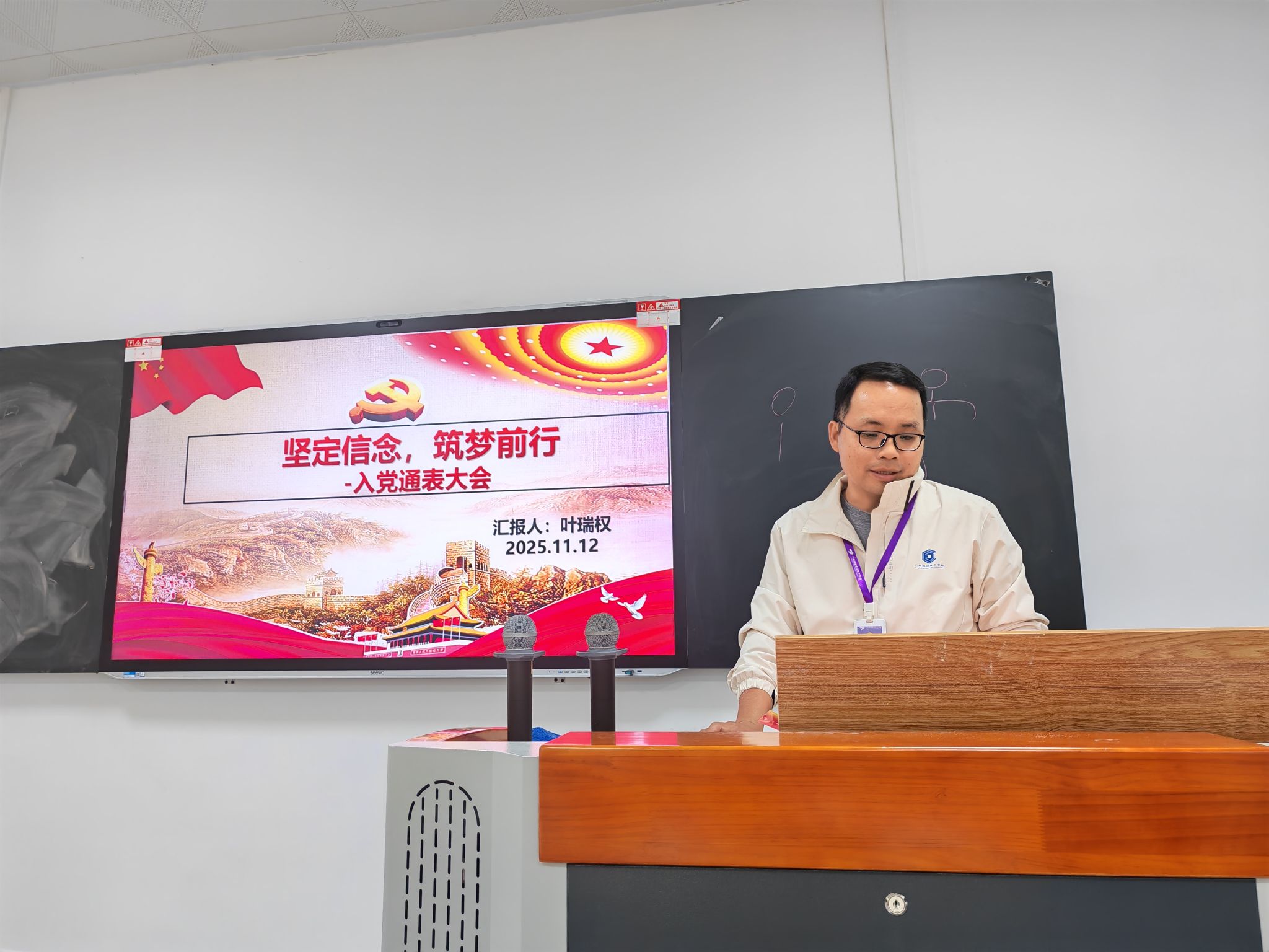 为进一步加强支部党员队伍建设,为党组织注入新鲜血液,2025年11月12日,我校思政与基础部党支部召开支部党员大会,专题讨论表决叶瑞权同志的入党问题。支部全体党员参加会议,会议由党支部书记梁锦彬同志主持。